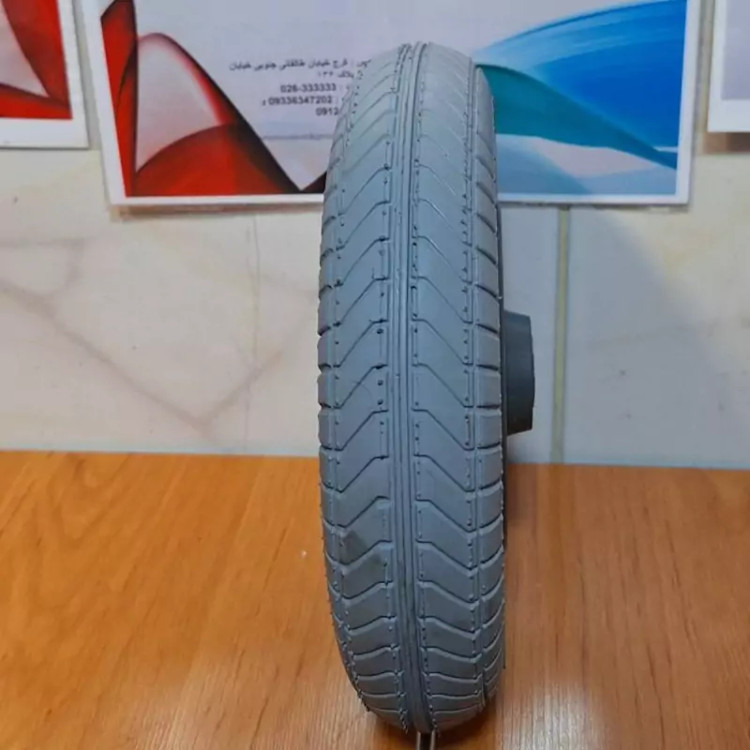 چرخ ویلچر بادی سایز 200*50 به همراه دو عدد بلبرینگ با لاستیک و تیوپ و رینگ استانداردبا قطر 20 سانتی متر